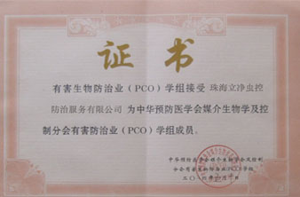 中國、珠海有害生物防治協(xié)會A級資質(zhì)認(rèn)證